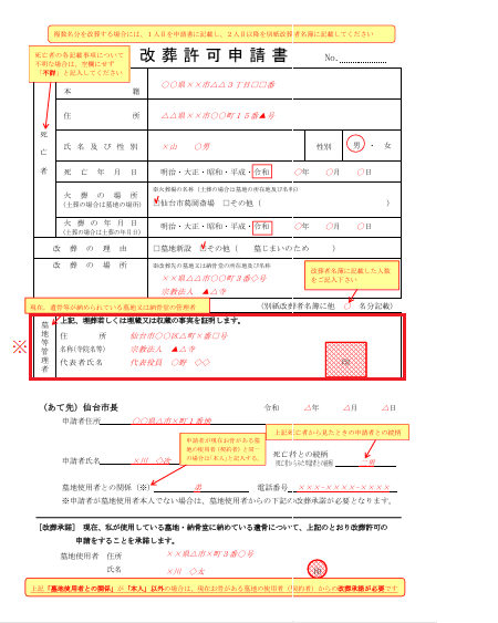 参考リンク: 仙台市公式HP|改葬許可の申請について